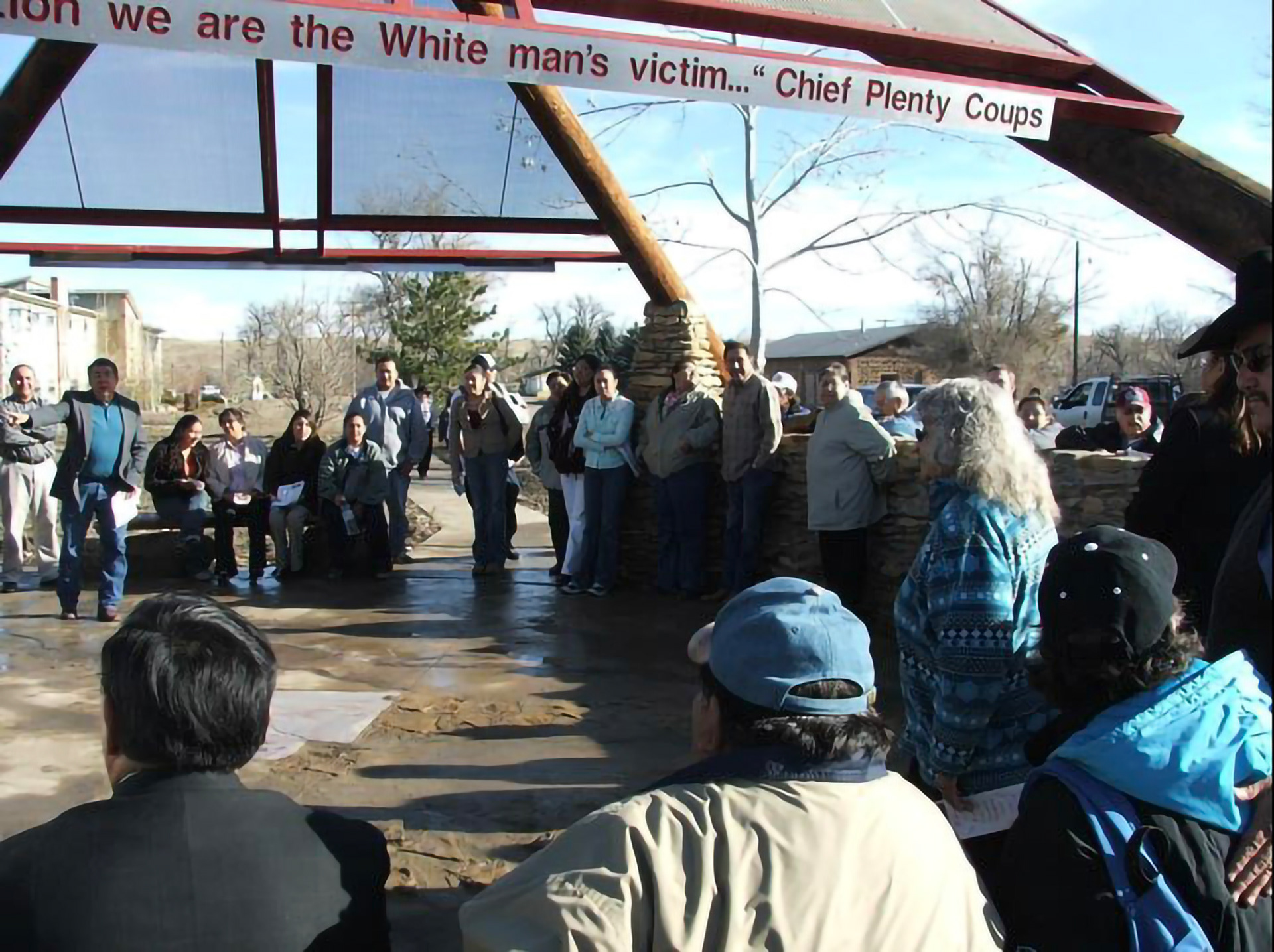 The planning and design conversation quickly broadened in scope with a Campus Design Charrette entitled Envisioning Little Big Horn College Community. This was a large-scale, interdisciplinary collaboration between Crow Nation community members, residents of Crow Agency, business people, historians, Little Big Horn College students, faculty, administration, Montana State University School of Architecture faculty and students, and invited design professionals. The consensus-building effort was to explore various Campus Master Plan options and siting opportunities for the future of the college. The envisioning project was recognized nationally in 2003 by the Associated Collegiate Schools of Architecture ACSA Collaborative Practice Award.