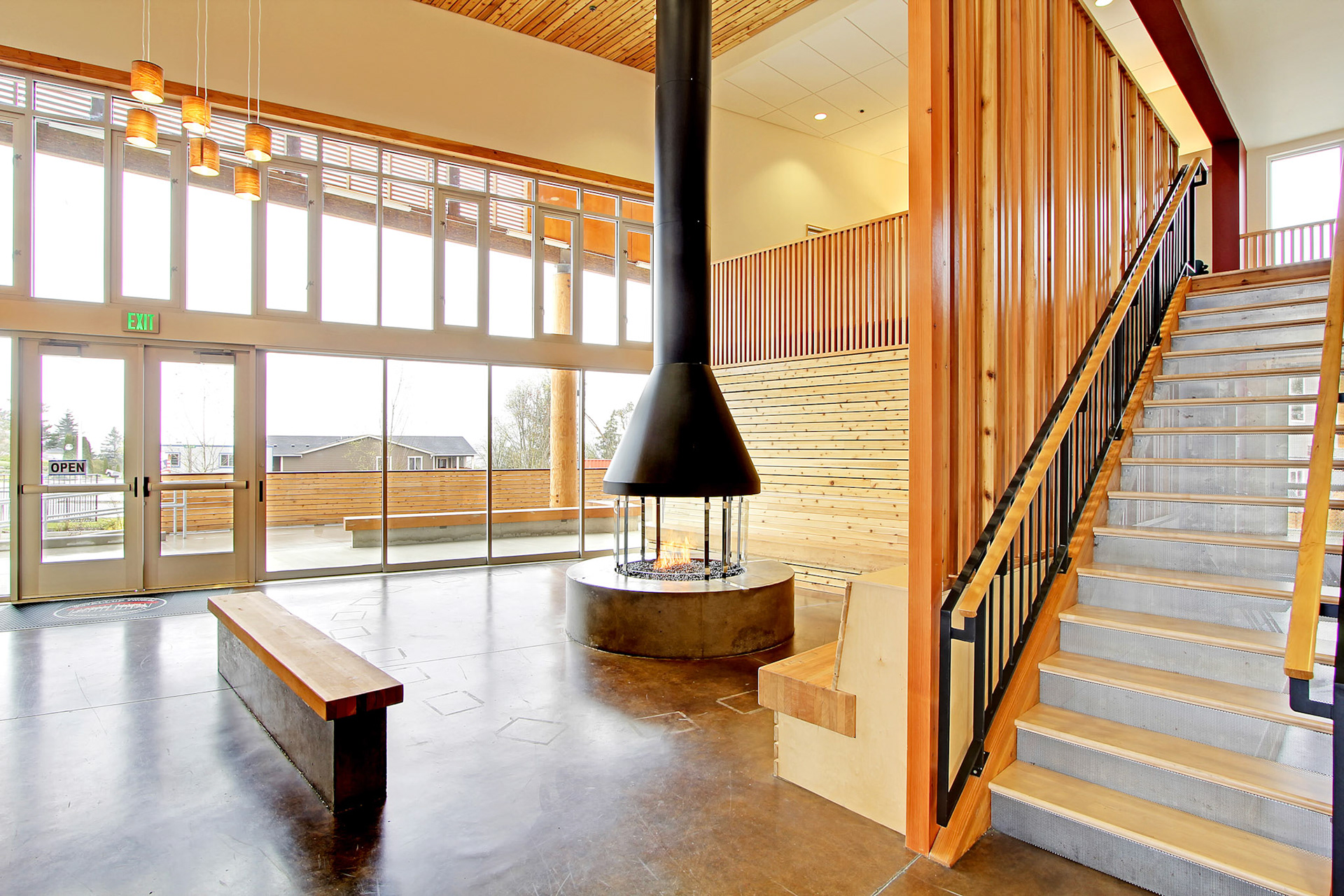 Located on traditional Puyallup tribal lands on a hill overlooking the Puget Sound tidal flats, the Place of Hidden Waters demonstrates the beauty and value of sustainable design principles. The traditional plank house has been reinterpreted for both the housing units and the central community living room space where family, friends and community interact.